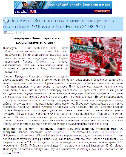 Общий вывод для тех, кто не понял сути, - по мнению букмекеров "Ливерпуль" выиграет, но в следующий раунд выйдет "Зенит".